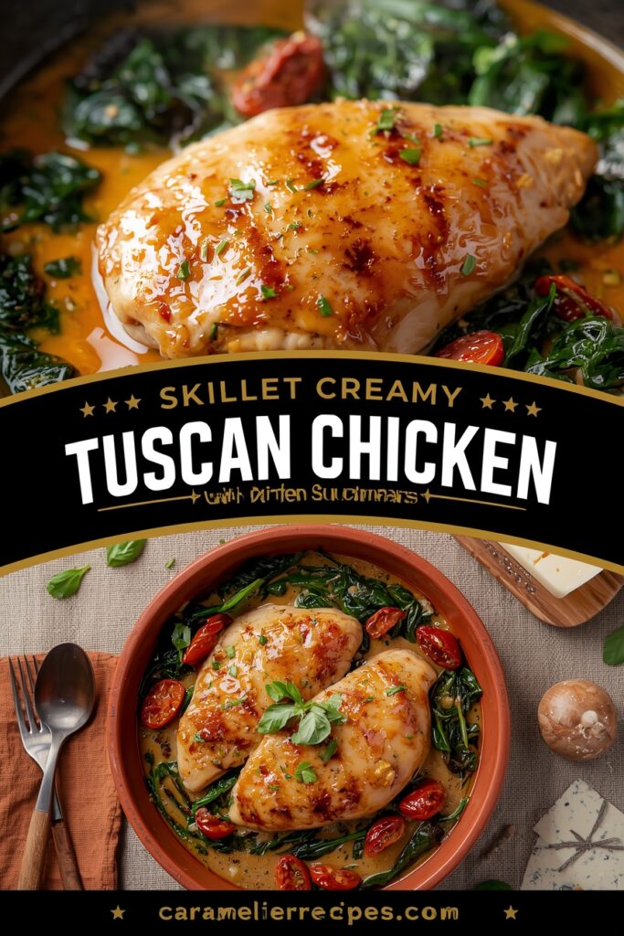 Skillet Creamy Tuscan Chicken with Spinach & Sun-Dried Tomatoes is more than just a recipe; it’s an invitation to savor the simplicity and richness of home cooking. With its straightforward steps and comforting flavors, it’s designed to bring joy and ease to your kitchen, proving that an elegant, profoundly satisfying meal doesn’t have to be complicated. Whether it’s a quick family dinner or a cozy evening with friends, this dish promises to be a cherished addition to your culinary repertoire. Enjoy the process, relish the aromas, and delight in every creamy, savory bite!